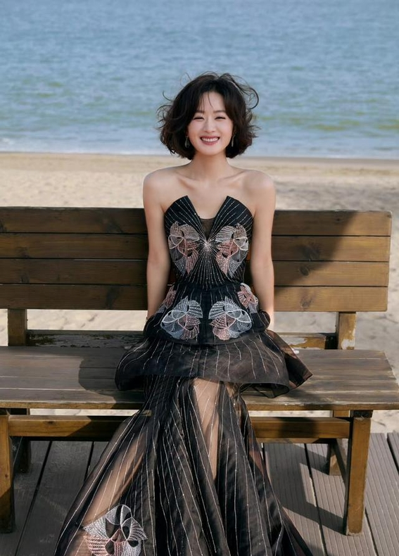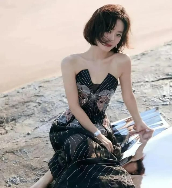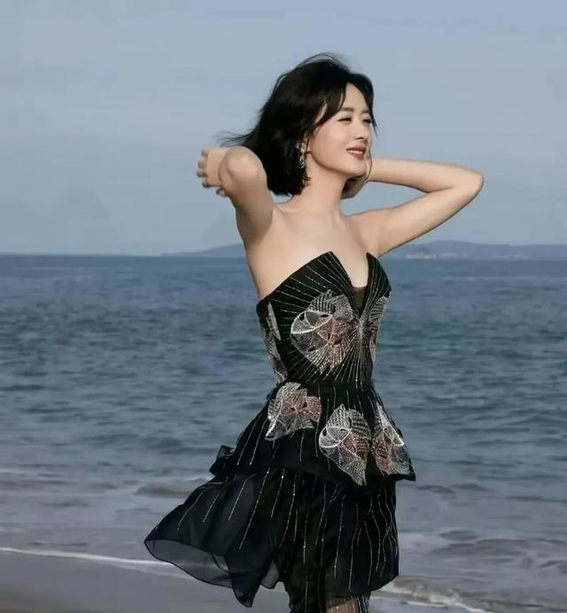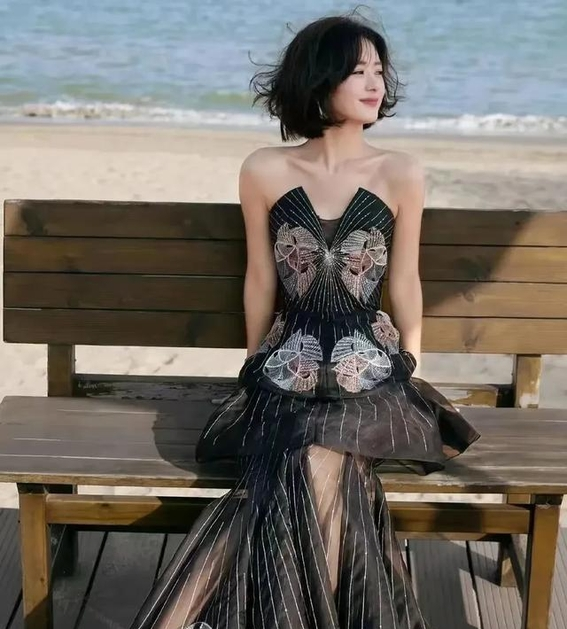 她这次出现的抹胸裙,仿佛把海风、浪花、灯光全都收进了裙摆里,抹胸设计把她的好身材勾勒得线条分明,露出健美的臂膀与小蛮腰,整个人像被海的气息包围,随性又迷人。