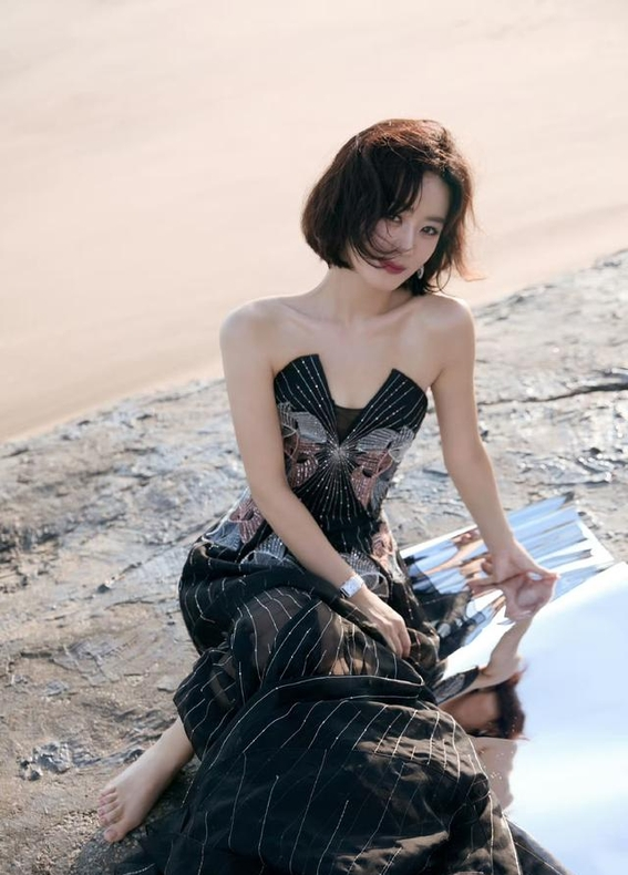 自从2020年起,赵丽颖在海边的光脚造型再度成为热议焦点。