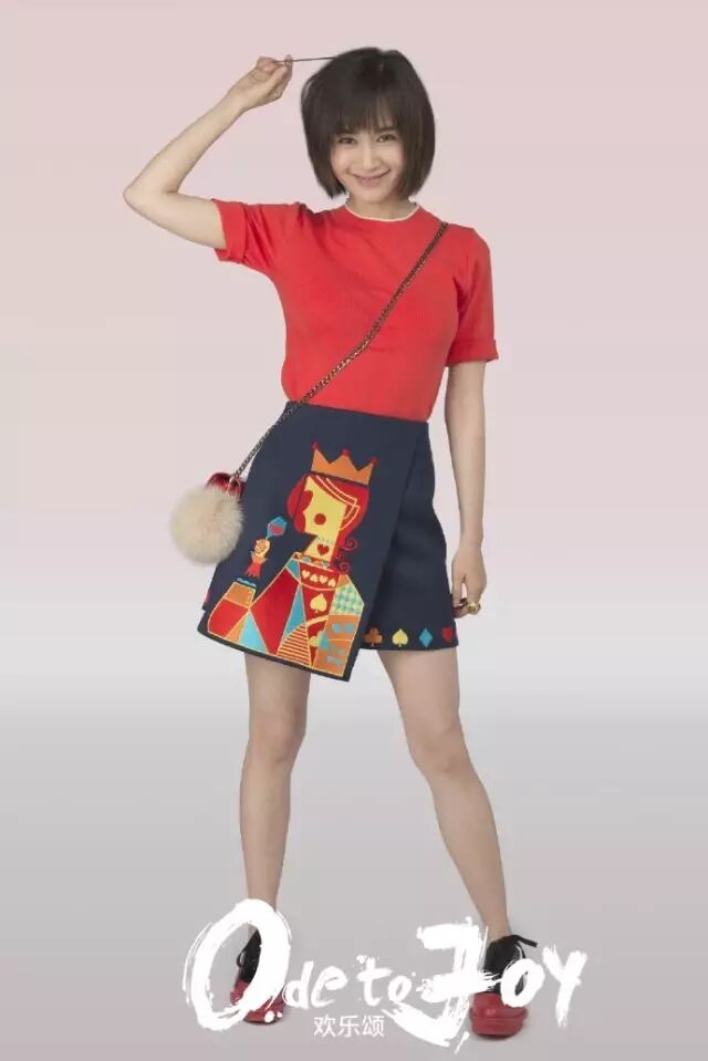 在戏里古灵精怪的王子文,用纯色T恤搭配图案半身裙。俏皮可爱的同时,裙子下摆不规则的设计也可以修饰腿部。