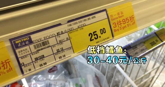 麦德龙、华润万家、欧尚、家乐福、世纪联华、物美,杭州的六家超市里都有鳕鱼,基本分为两个档次: