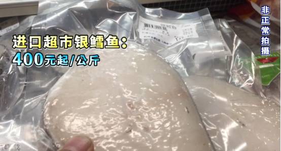 除了大型连锁超市,我们还去了杭州一家比较高档的商场,里面有家专卖进口商品的超市。这里所有鳕鱼,基本都是银鳕鱼,价格都是400元一公斤起。