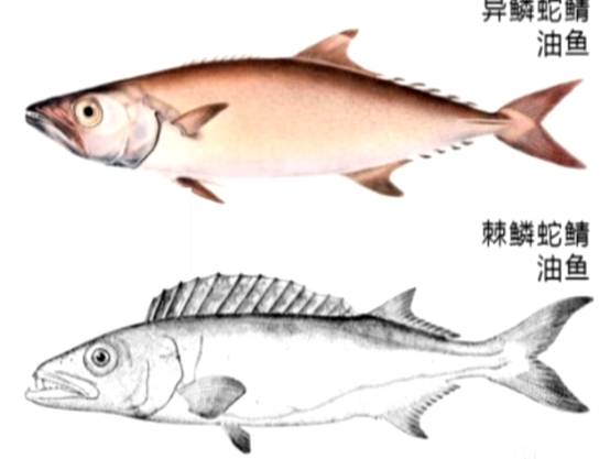店主说,这个叫做龙鳕鱼,一般是店里做配菜,快餐,日式烧烤的材料,检测了它的DNA,发现它就是油鱼,学名异鳞蛇鲭。吃了会拉肚子的,就是这种鱼,油鱼体内含有近20%的油脂,而其中的蜡酯人体不能消化,只好原样把它再排出来,就是“屁股漏油”的原因。