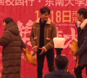 近日,王凯正在为电影《英雄本色》跑路演,现身南京多个大学为考研的同学加油