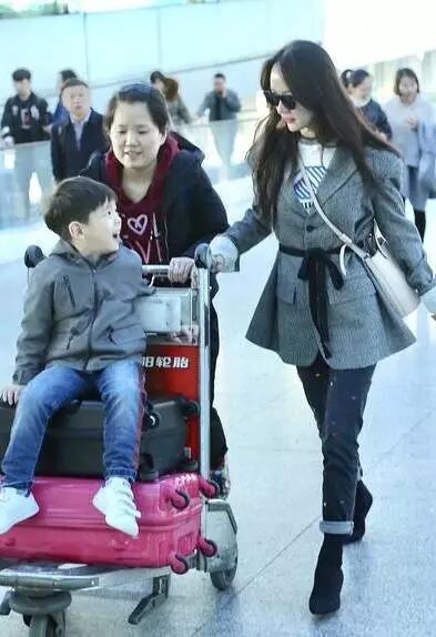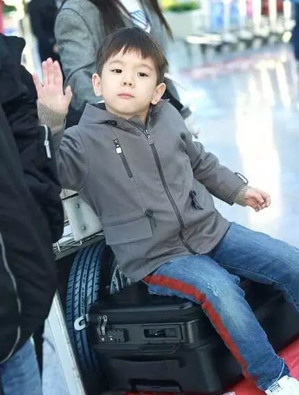 嗯哼一家三口亮相机场,嗯哼大王坐在行李箱上,爸爸妈妈在一旁保驾护航