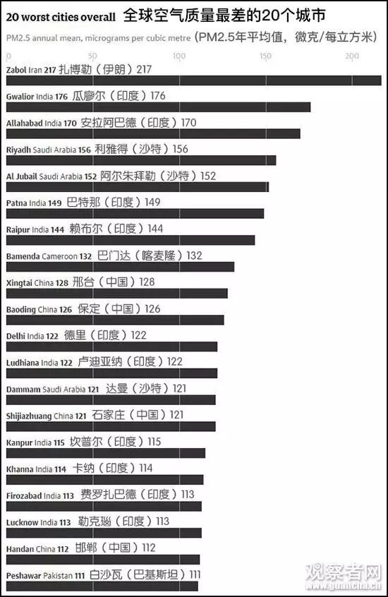 13、卫报:全球空气最差20城市 印度占10个中国占4个