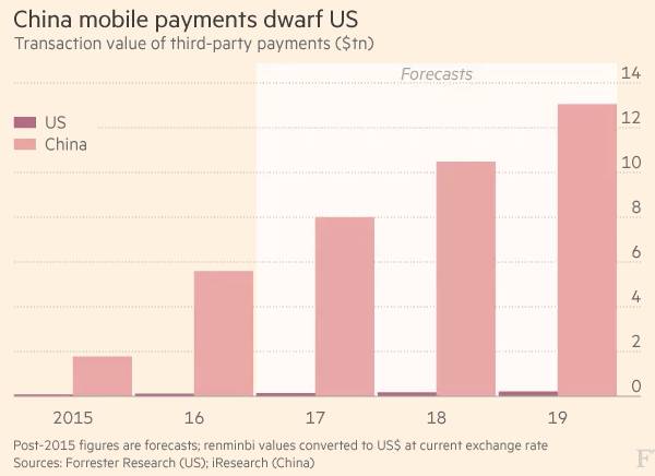 19、金融时报:去年中国的移动支付规模是美国的50倍
