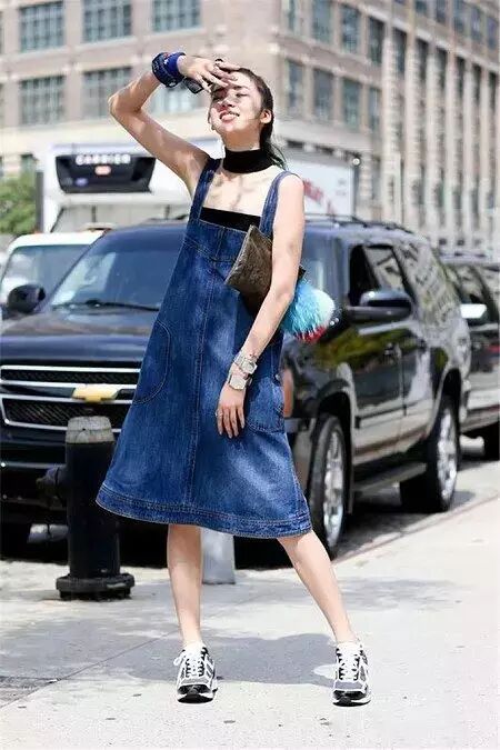 特别强调:背带裙从来都不适合胸大的女生,会让你看起来胖了一圈。