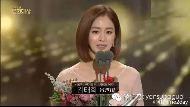 金泰熙不止躺着收视率破20,还躺着拿了SBS演技大赏的演技本赏哟。