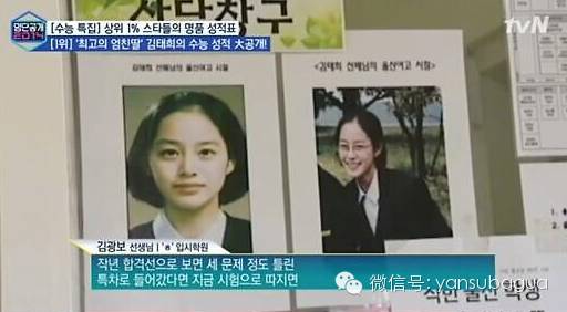 韩国有线电视tvN节目《名单公开2014》中,公开了明星学霸的排名,第一名则是金泰熙。她在蔚山上学时就因出众的外貌和优异的成绩出名。金泰熙中学班主任表示执教24年还是第一次看到有学生高一到高三所有科目都是满分。“