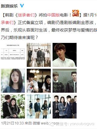 最近又把人家金编剧拉过来拍中国版《继承者们》电影