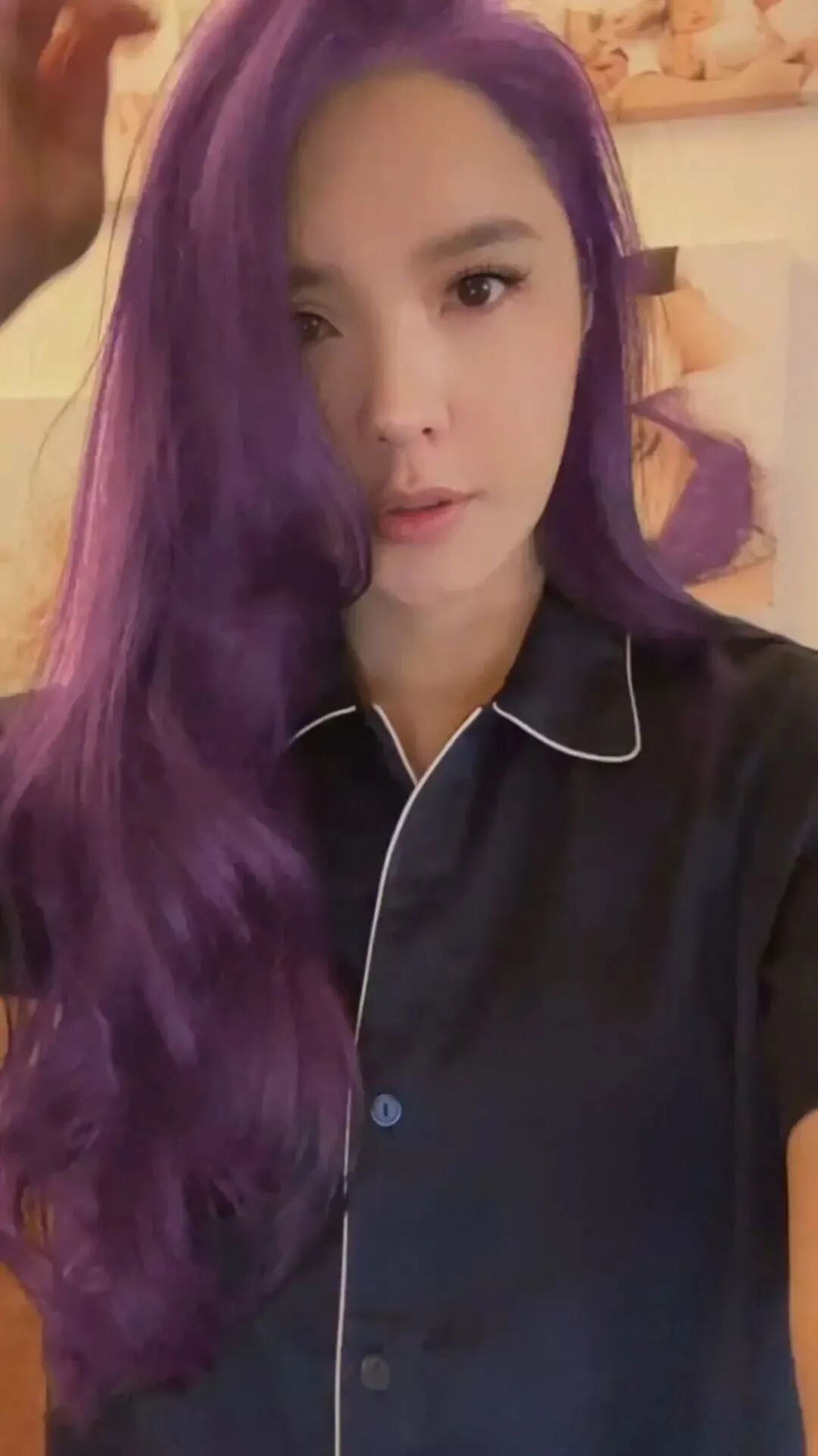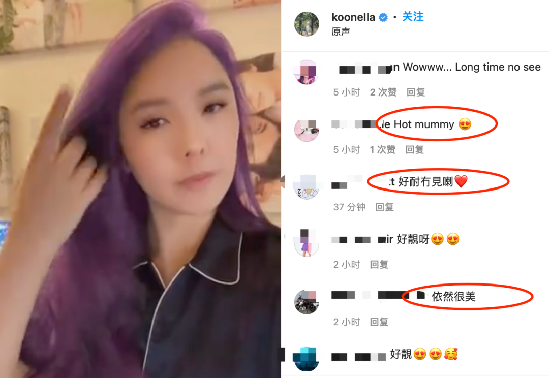 而她也将自己一头长发染成了紫色,感觉年轻又漂亮,跟当年初出道时的外表,几乎没什么分别。
