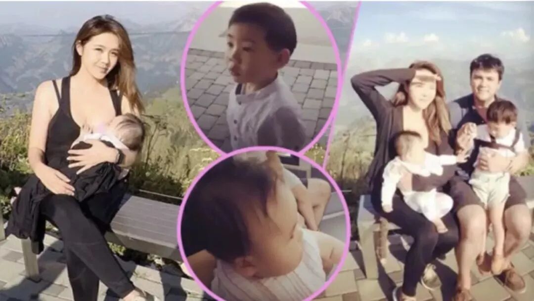 就连去瑞士爬山,看到儿子饿了就直接在山顶喂母乳,完全没有偶像包袱。
