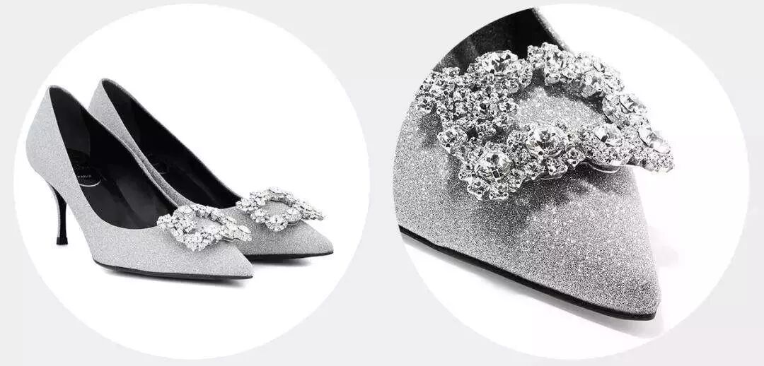 婚鞋来自唐嫣代言的 Roger Vivier,闪银花钻高跟鞋整个blingbling的超惹眼,售价15100元。