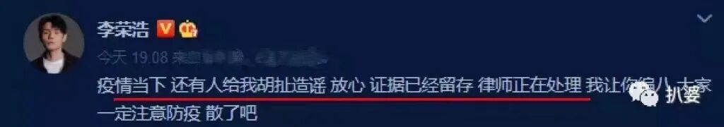 李荣浩最近突然在微博认真辟了个谣,还表示证据已经留存,让律师处理中了。