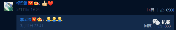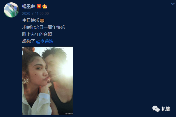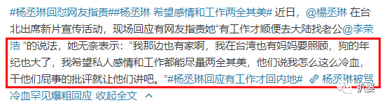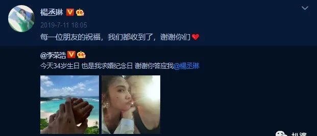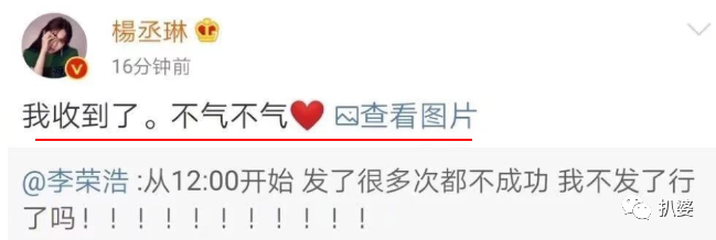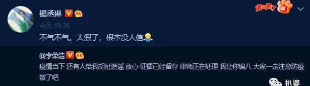杨丞琳也迅速转发了李荣浩的辟谣&维权微博,还哄他“不气,太假了,根本没人信”。