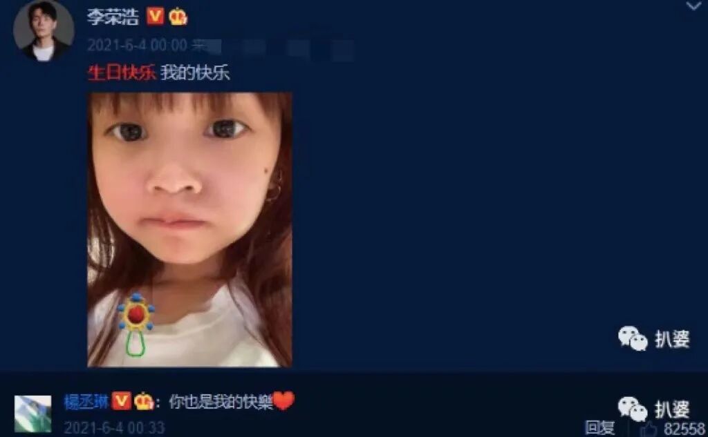 李荣浩则晒了一张杨丞琳笑起来更好看的照片。