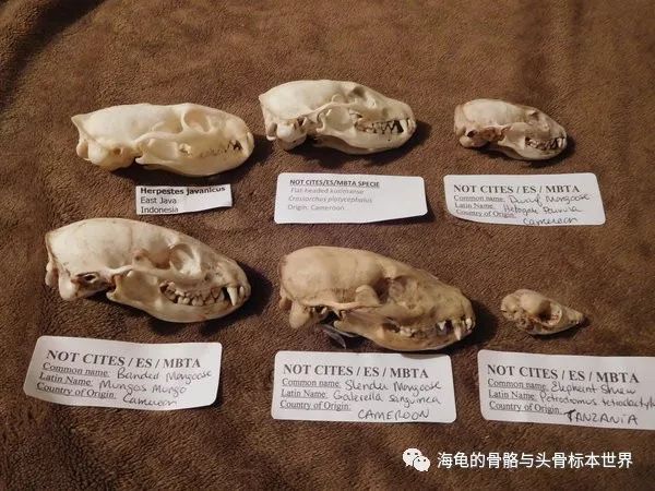 第二排:缟獴( Banded mongoose)、黑尾獴(black-tailed mongoose)、四趾象鼩(Four-toed elephant shrew)