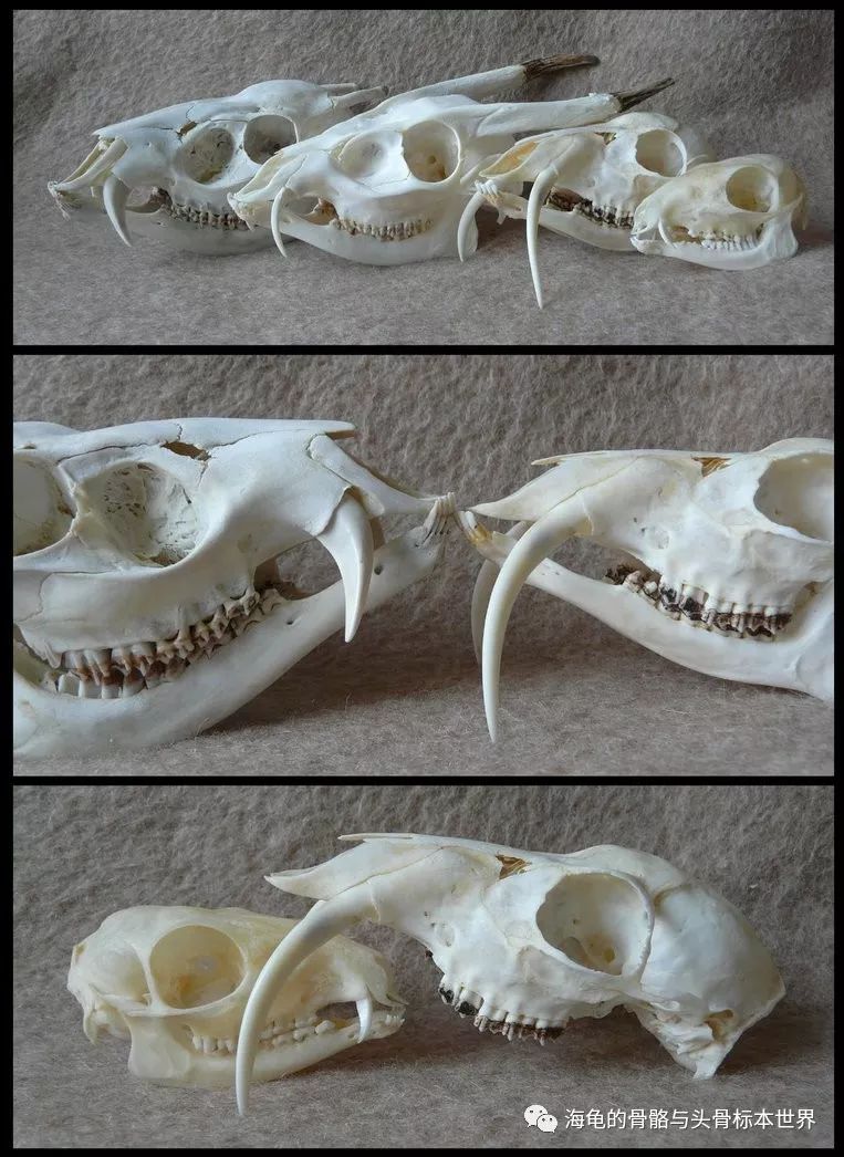 从左至右:毛冠鹿(Tufted Deer)、麂(Chinese Muntjak)、