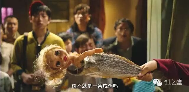 15)“烧鸡梗” 烧鸡梗并不是指其他电影中有类似桥段,而是这个梗在本片中一闪而过,可能有朋友没太注意,就是这个人鱼族,喜欢吃烧鸡(做烧鸡)的人其实只有姗姗一个,整部电影中,吃过烧鸡而且喜欢吃烧鸡的男人只有一个——刘轩,所以不难理解,刘轩为何能轻松击败八哥顺利俘虏姗姗。