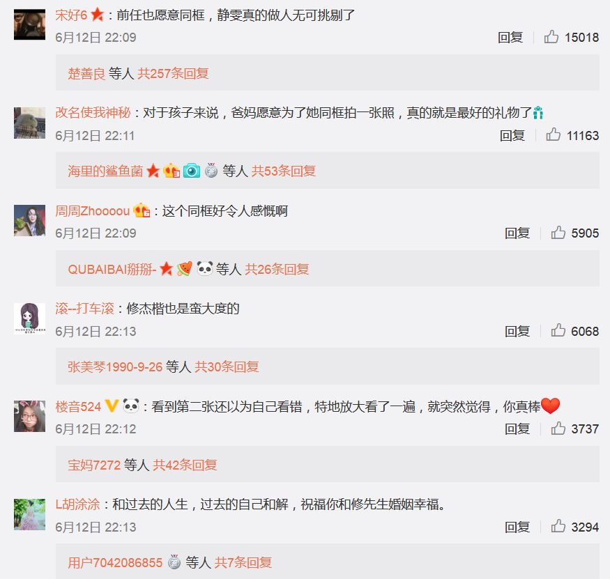 网友纷纷表示“同框感人”、“修杰楷好大度”、“勇敢同过去和解,祝福”。