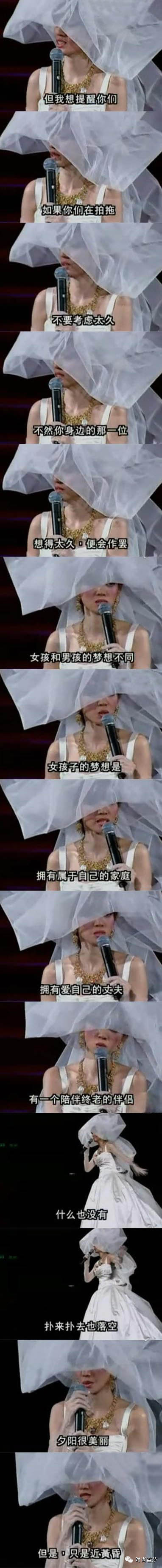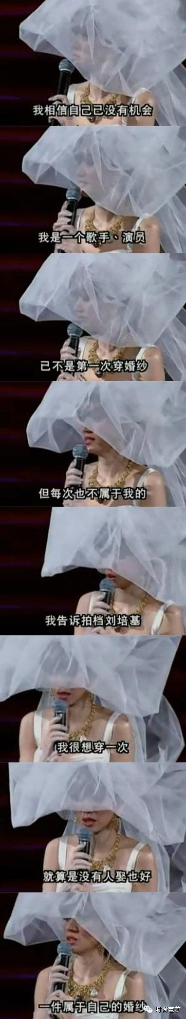 梅艳芳在告别演唱会上,身穿婚纱,旁边没有新郎,她为自己掀起头纱