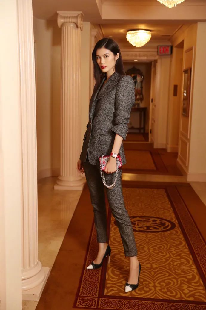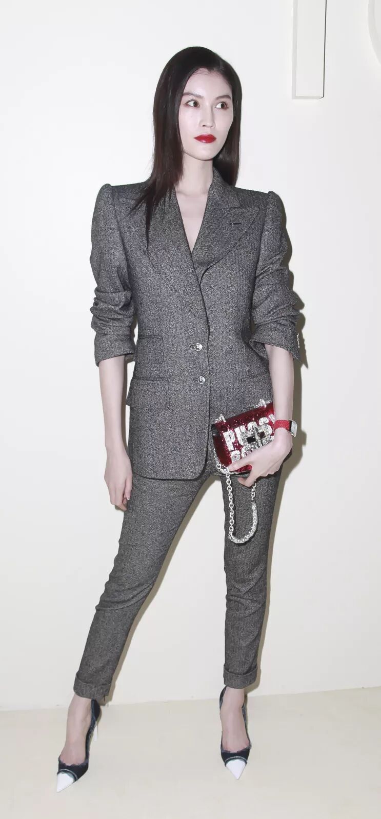 因为这种长西装,同在Tom Ford秀场的何穗都Hold不住啊。
