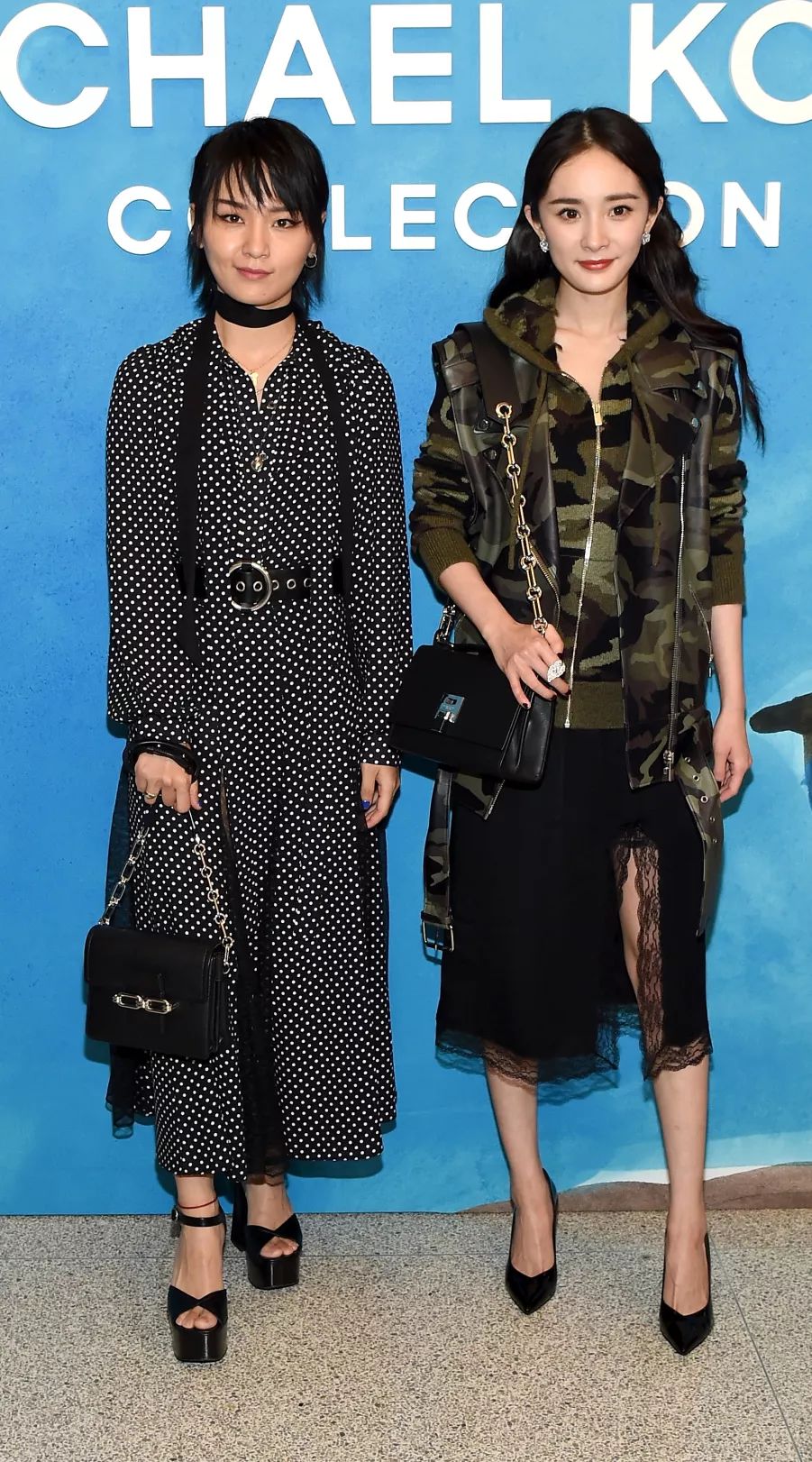 Michael Kors是纽约时装周的重头戏,这次杨幂看秀赶上了生日,品牌官方送了蛋糕,她迷彩服+长裙配上飞机还很有大片感。