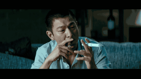 华仔右手夹着雪茄,