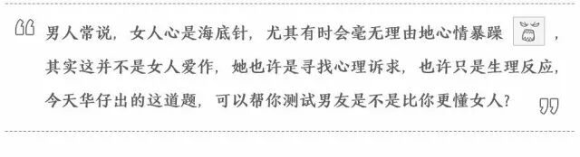 将上图转发到朋友圈,提问各位男性朋友,他们的回答,会印证对于女人的了解到底有多深。