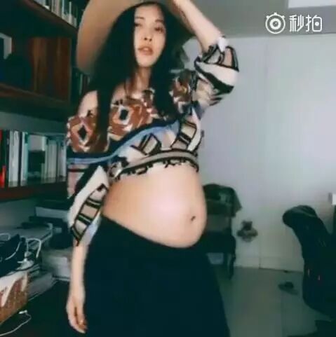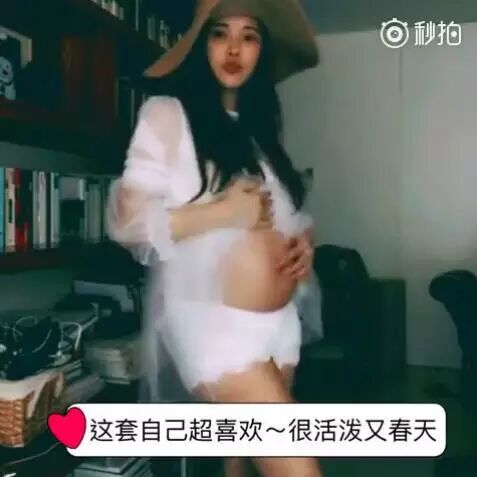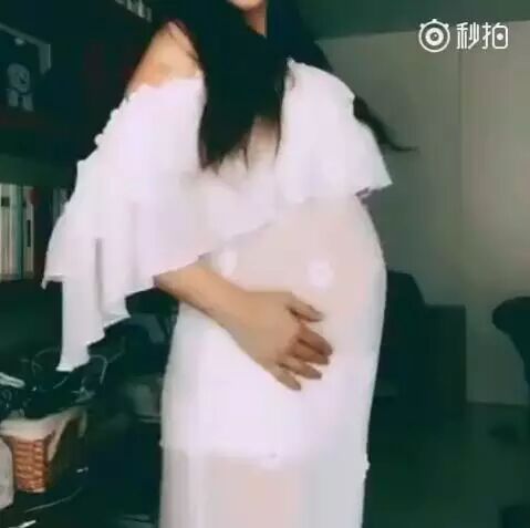 4、穿上第四套的时候,就开始随着音乐挺着大肚跳起来,甚至让儿子放好听的歌曲,她要和肚中的女儿一起跳。