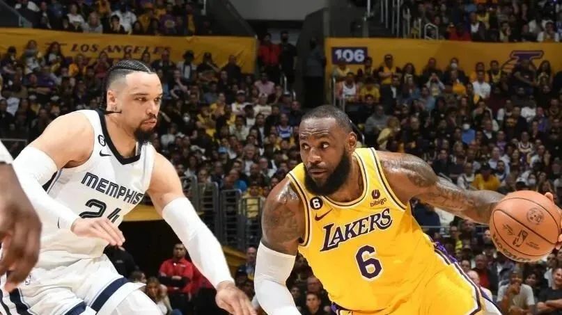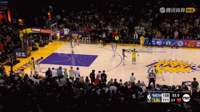 湖人与灰熊系列赛第四场还剩29.4秒时,詹姆斯俯身拿球,狄龙-布鲁克斯贴身防守,湖人主场的球迷纷纷站了起来,等待见证这次冤家对决。