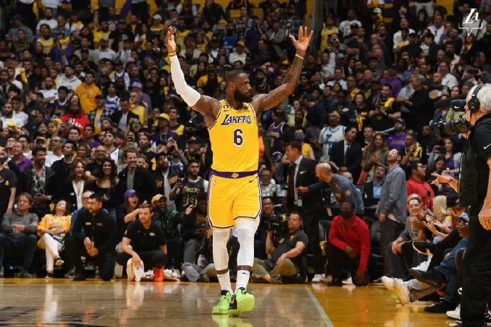此球入筐,湖人领先5分,比赛大局已定,晋级赛点已入湖人囊中。球迷高喊“MVP”,詹姆斯振臂咆哮捶胸大吼,狄龙则是满脸沮丧。