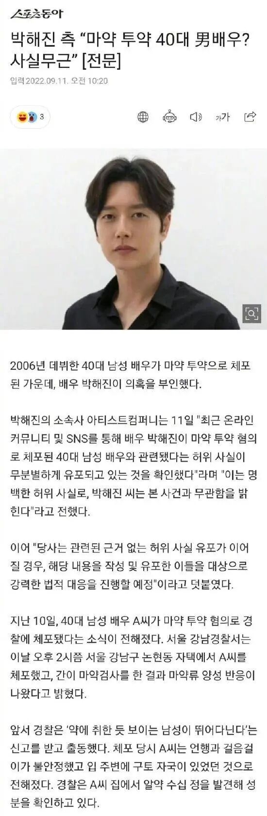9月11日,据国外媒体报道,朴海镇否认了人们对他通过经纪公司吸毒被捕的猜测。