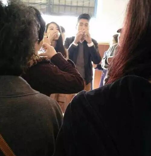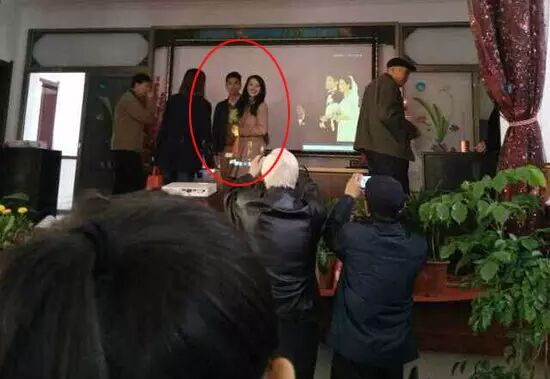 高圆圆和赵又廷上台,参加宴席的村民纷纷拍照