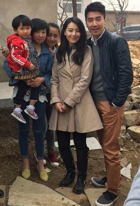 高圆圆带着赵又廷回乡祭祖,与热情的村民们合照