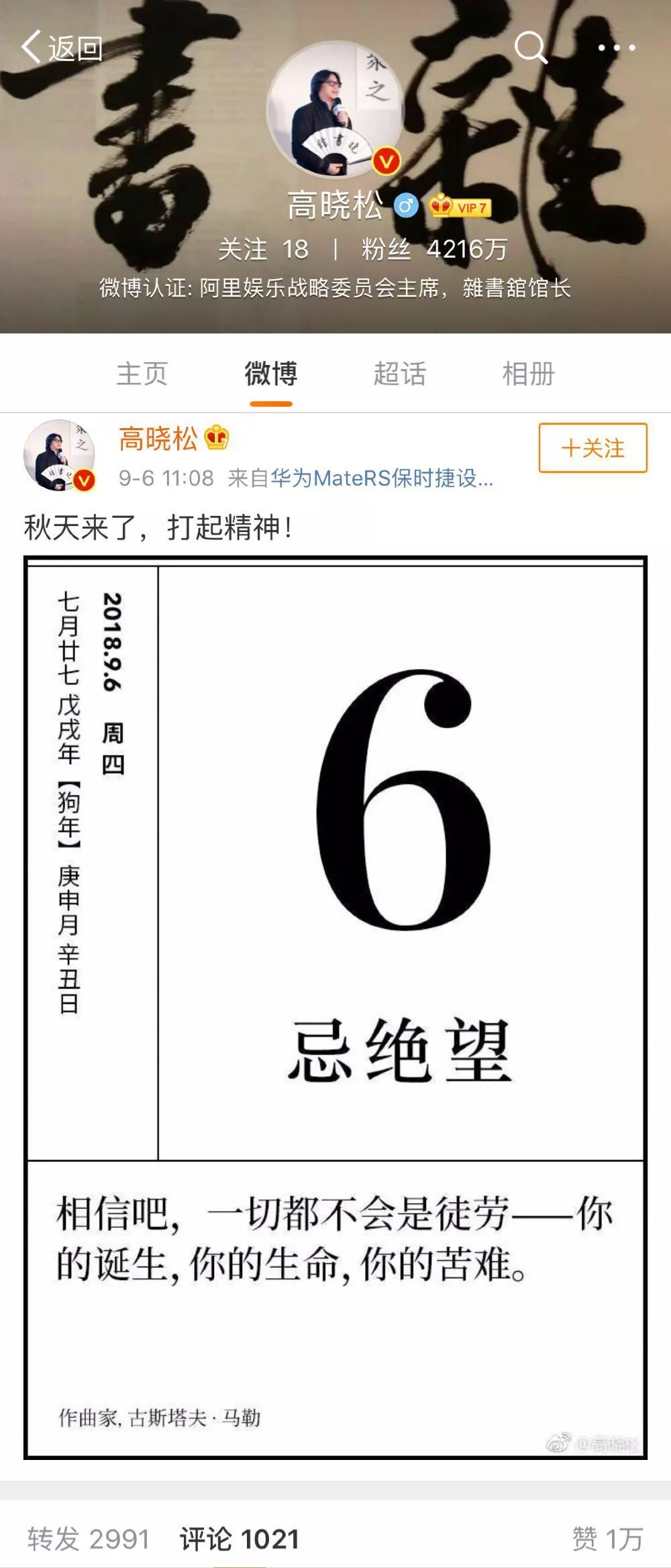 最近,高晓松也在微博上晒出电子版单向历,告诉大家,秋天到了,要打起精神!