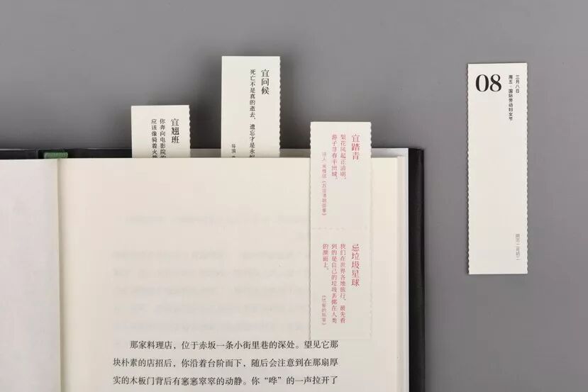 撕下的页面可以作书签使用,标记阅读到的部分、随手书写读书笔记。带着日期的书签,正好让你直观地看到自己每一段时间的阅读进度。