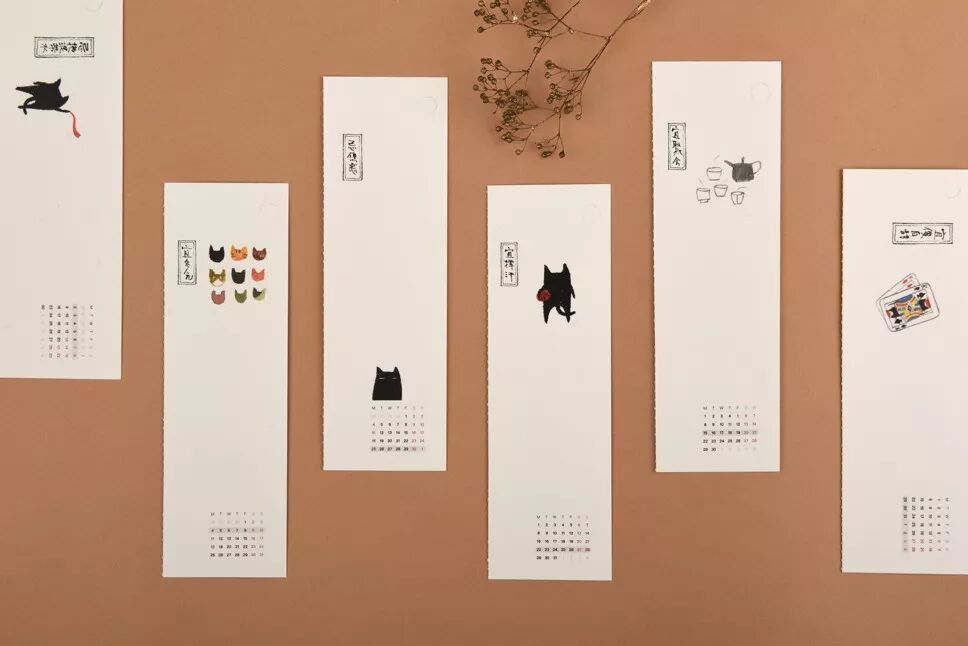 每一页周历背面都有月历,提醒你这是这一个月的第几周。把它撕下,就立刻变成了一个好看的小书签。张乐陆还在每个小书签上画了一只和明信片上的猫呼应的小猫图案,一本周历也就有了 53 个可爱的小书签。