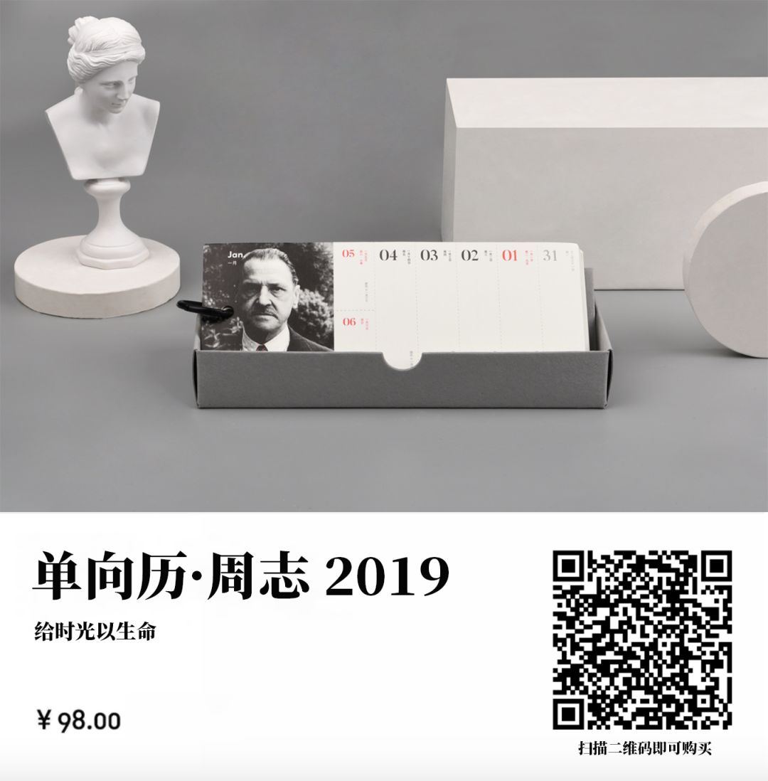 单向历 2019 在 1 月 1 日选择了博尔赫斯的一句话:“时间永远分岔,通向无数的未来。”无论当下有多少困惑与犹疑,把握当下,未来就会以你期待的方式到来。