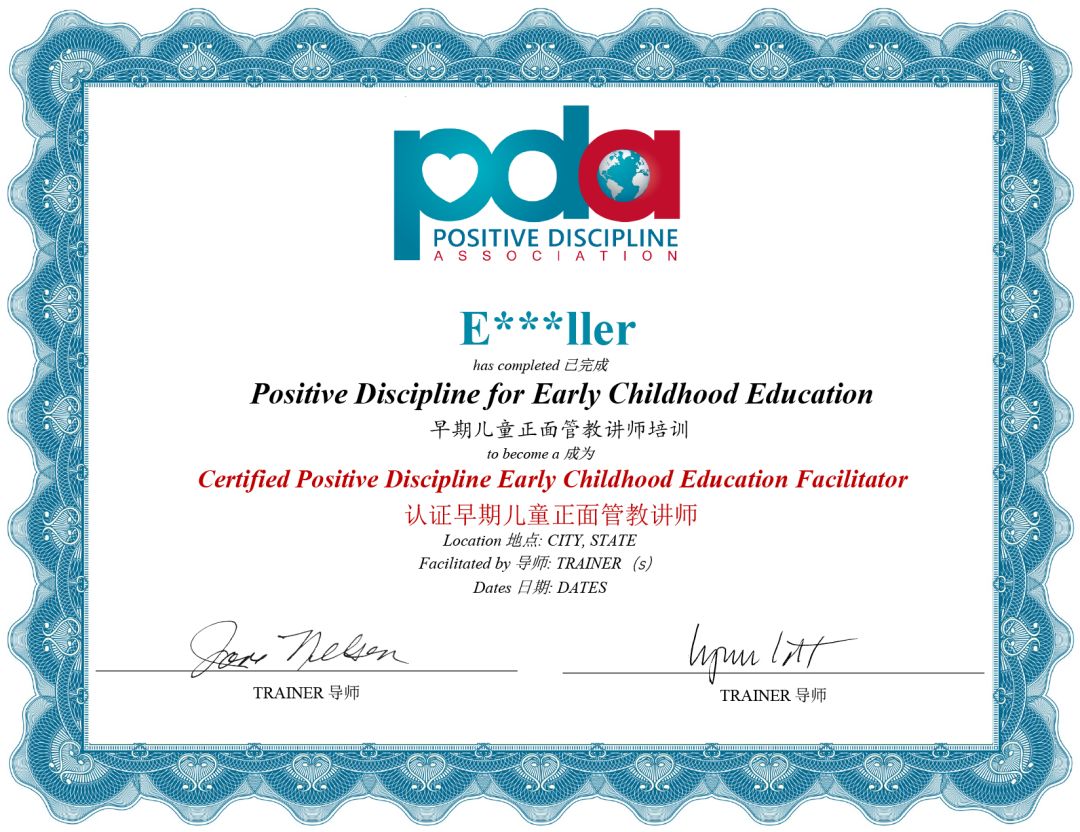 “注册正面管教早期儿童讲师”(CPDECEF)资质