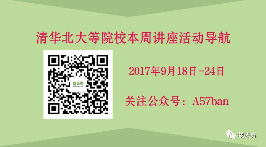 “我去办”57ban.com(微信公众号:A57ban)小编收集整理了本周北大讲座、清华讲座、人大讲座、北师大讲座、首师大讲座,等高校讲座活动,快分享给朋友们看看吧!