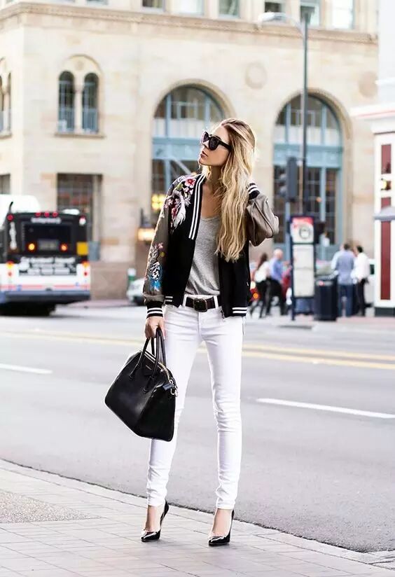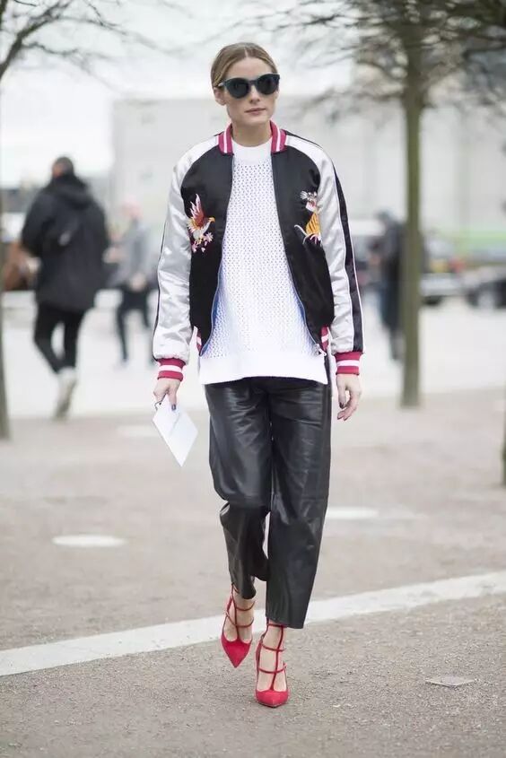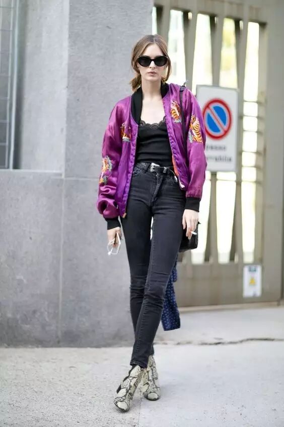 ▲搭配夹克选择小脚裤或紧身裤一般不会错
