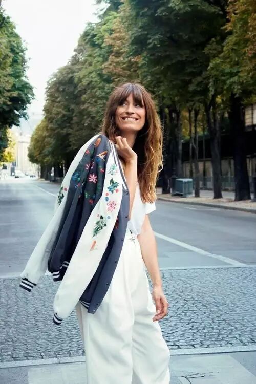 ▲针对小范围的刺绣图案,选择纯色的裤子和内搭必不可少