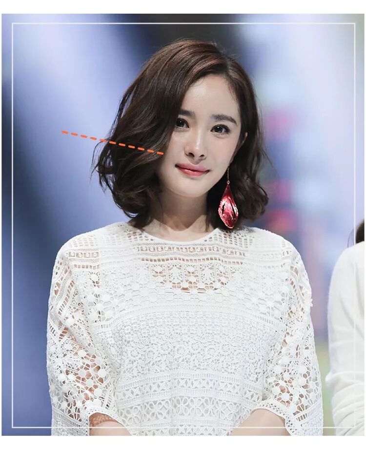 如果你的脸型和杨紫、赵丽颖一样偏圆,那么你卷发的弧度就可以贴近下巴,可以帮我们更好修饰脸型,看起来更加甜美。