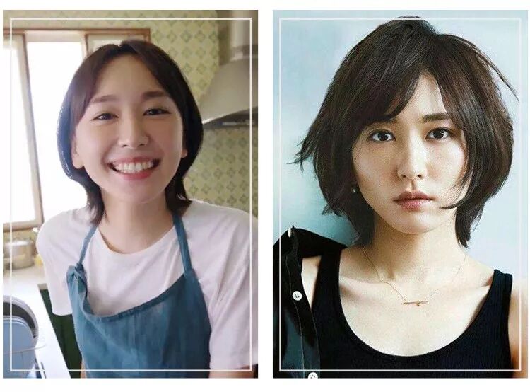 但是她剪了短发以后,整个人轻盈了一圈,看起来脸小了一倍不止。(她可能和我们一样,即使努力减肥了脸也还是有点圆,但好在这个发型很适合她~)