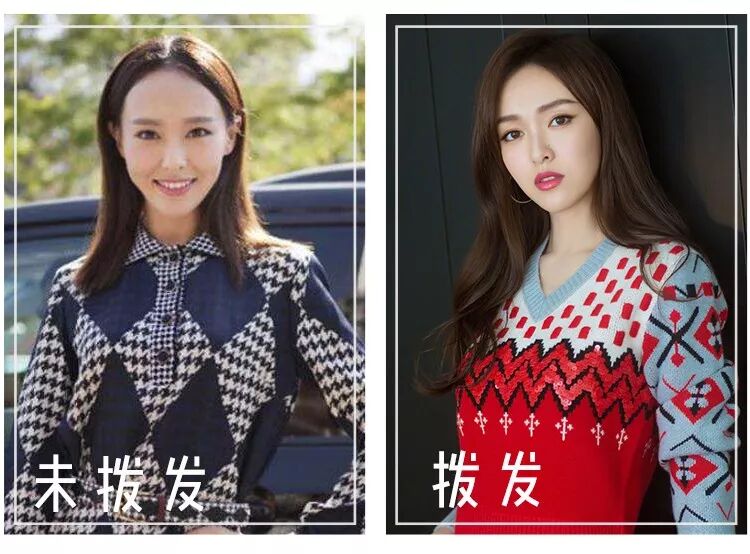 像唐嫣就是很明显的大脑门,但是她的中分发型还有些小心思,不会像我们一样直接把头发均分,而是将一边后侧的头发拨到前面去,和前面说的让发根立起来原理差不多,增加发量的同时还不显呆板,我们来看看对比。