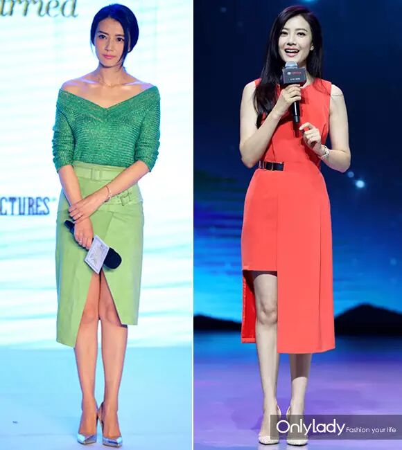 小腿粗的话,还是那条亘古不变的定理——“裙长没过膝盖”,那怎样“半遮半掩”呢?就是像赵薇这种半透明的薄纱裙,若隐若现,也是让群众看不真切。