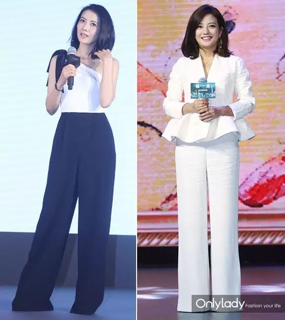 关于裤子,就简单多了。这个季节适合小粗腿的裤子有很多,比如气场担当的阔腿裤。