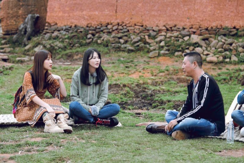 采风的过程也相当接地气,一身卫衣牛仔裤球鞋,全素颜出镜,和当地人交谈时就直接盘腿坐在草地上,女神认真投入的模样超有魅力。
