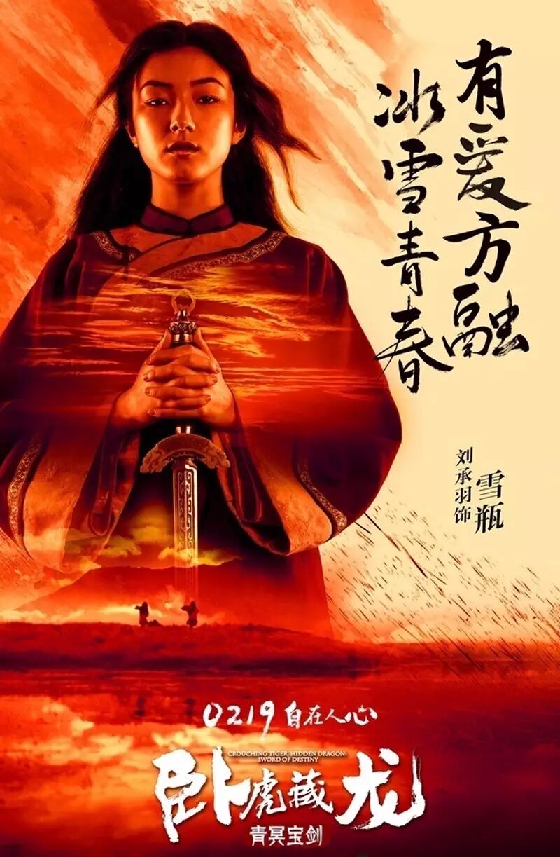 由袁和平执导的电影《卧虎藏龙之青冥宝剑》上映后反向平平,倒是影片中扮演“雪瓶”一角的中意混血女星刘承羽深受热捧,因为在社交平台上PO自己的照片和小视频而被选中(瞧瞧人家这命),形象冷艳气质不俗,拜师杨紫琼,被外媒称做下一个章子怡。